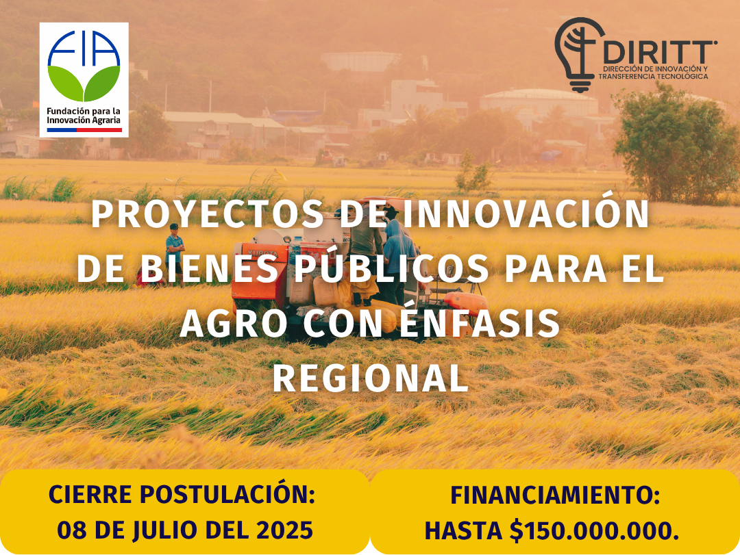 La Dirección de Innovación y Transferencia Tecnológica (DIRITT) invita a participar en el concurso Fondo Regional para la Productividad y Desarrollo (FRPD) 2025 del Gobierno Regional de La Araucanía.