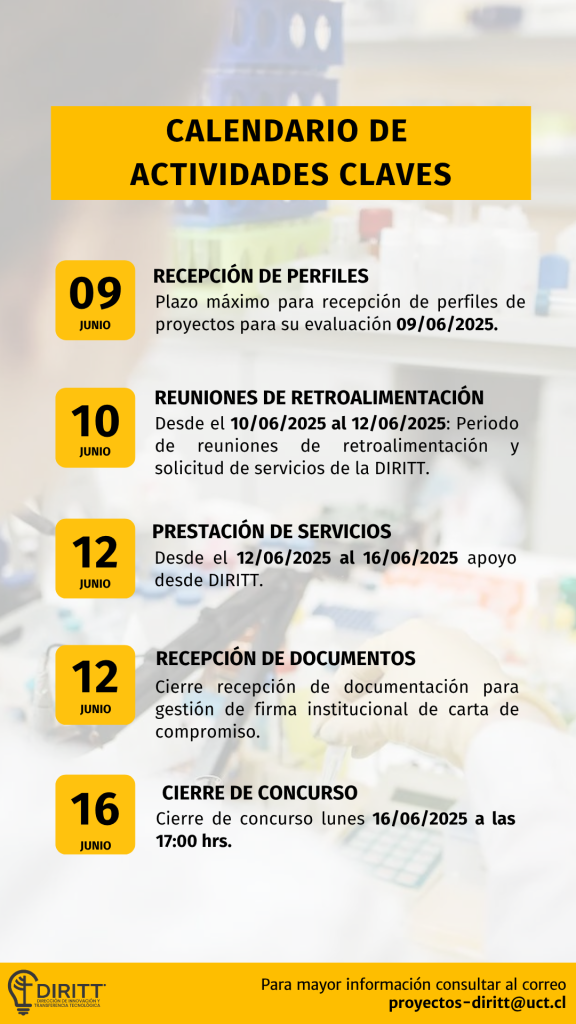 Te invitamos a considerar el calendario de actividades claves para la postulación: